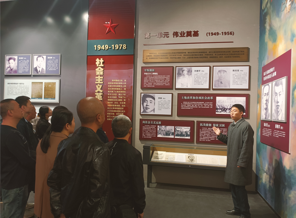 全體黨員懷著崇敬的心情在革命烈士紀念碑前默哀,鞠躬致禮,敬獻花籃。隨后全體人員前往烈士陵園紀念館,在紀念館講解員的講解下大家對綿陽的先烈們有了更深刻的了解,在接受黨性教育和精神洗禮的同時,大家紛紛表示,要從革命先烈的英勇事跡中汲取奮進的精神力量,賡續(xù)紅色血脈,銳意進取、擔當作為,砥礪前行。